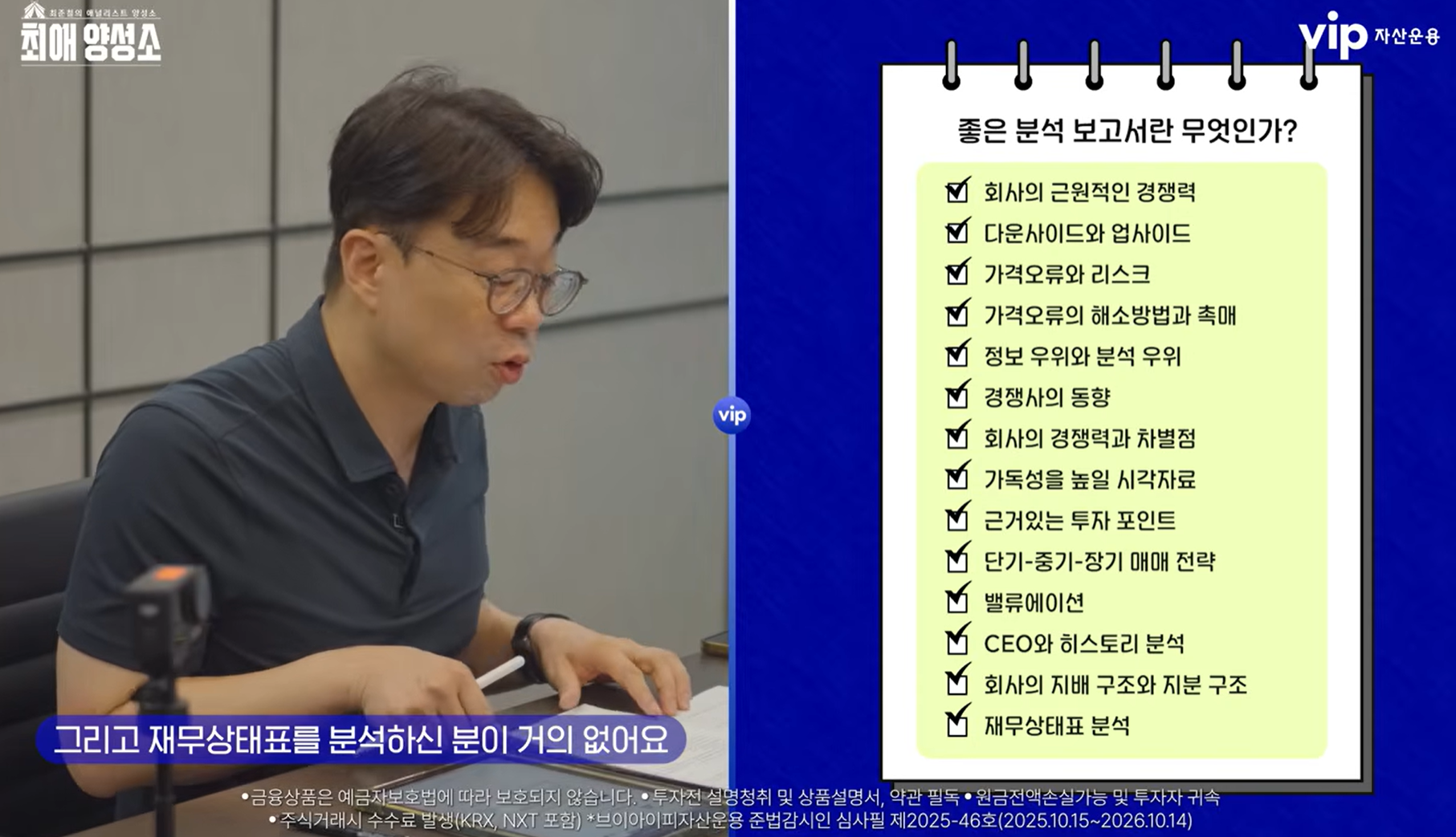 VC를 하며 스타트업을 만나고 여러 미팅을 통해 해당 기업에 대한 정보를 얻고, 이후 실제 투자를 수행하기까지 해당 스타트업에 대해 다양한 분석을 하게 된다. 이 과정에서 다양한 분석의 결과물을 투심 (투자심의) 보고서의 형태로 정리하여 투심위 (투자심의위원회)를 통해 보고를 하고 이를 통해 실제 투자가 집행되게 된다. 물론 투심위 전에 투심위원분들에게 조언도 얻고 대화도 나누며 빠뜨린 분석 요소가 없을지 살펴보긴 하지만, 혹시라도 보고서에 부족한 내용은 없는지, 혹은 내가 실사 과정에서 놓친 것들은 없는지 항상 걱정이 된다. 최근 vip 자산운용에서 운영하는 유투브에서 기업 분석 보고서에 들어갈 내용을 체크리스트로 정리한 것을 보았다. 이를 보며 스타트업 투자를 위한 투심보고서와는 어떤 차이점이 있을지, 그 차이가 나는 이유는 무엇인지 정리해보았다.